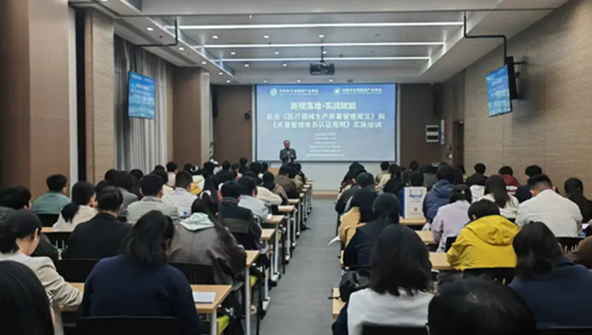 为深入贯彻落实国家药监局关于新版《医疗器械生产质量管理规范》(以下简称“新版GMP”)及新版《质量管理体系认证规则》的相关要求,助力医疗器械企业准确把握政策变化、提升质量管理水平,4月8日下午,由协会和国医械华光认证(苏州)有限公司联合主办的“新规落地·实战赋能”公益讲座在合肥综合性国家科学中心大健康研究院成功举行。来自全市医疗器械企业的管理者代表、质量负责人、生产及注册人员、专业审核员等近百位行业同仁参加活动。
